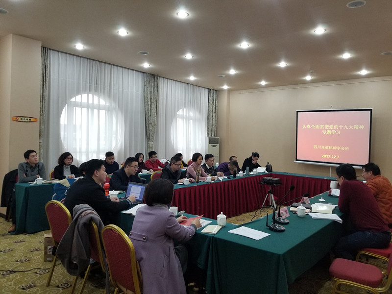 2017年12月7日下午14点30分,我所在东津酒店六楼会议室举行关于全面贯彻党的十九大精神专题学习座谈会。我所主任梁普林同志作为绵阳市党代会代表,根据党代表任期制试点工作有关规定,为充分发挥党代表示范引领、服务大局、监督落实的作用,结合工作实际,深入学习贯彻党的十九大精神,组织全所研究十九大精神。本次会议邀请到了前游仙司法局局长、现区人大环治委主任魏洪奇先生作为开讲嘉宾。