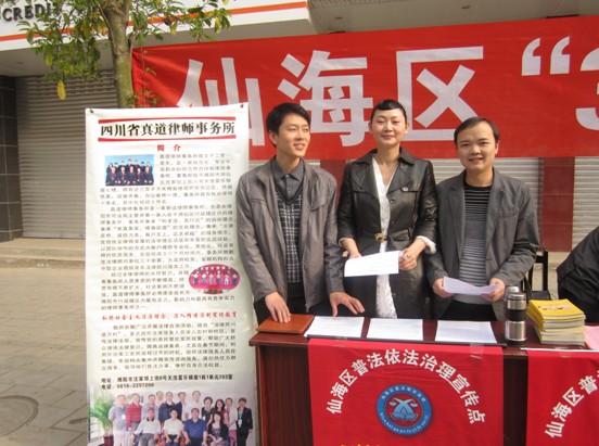 一年一度的“3.15国际消费者权益日”如期而至,作为绵阳市仙海水利风景区管委会(以下简称“仙海管委会”)的法律顾问,四川真道律师事务所(以下简称“我所”)指派李雪晴律师、李超生律师、办公室谭亚琴主任及律师助理杨正伟共计四人参加了在仙海区沉抗镇海涛街举行的“仙海区‘3.15’法制宣传活动”。