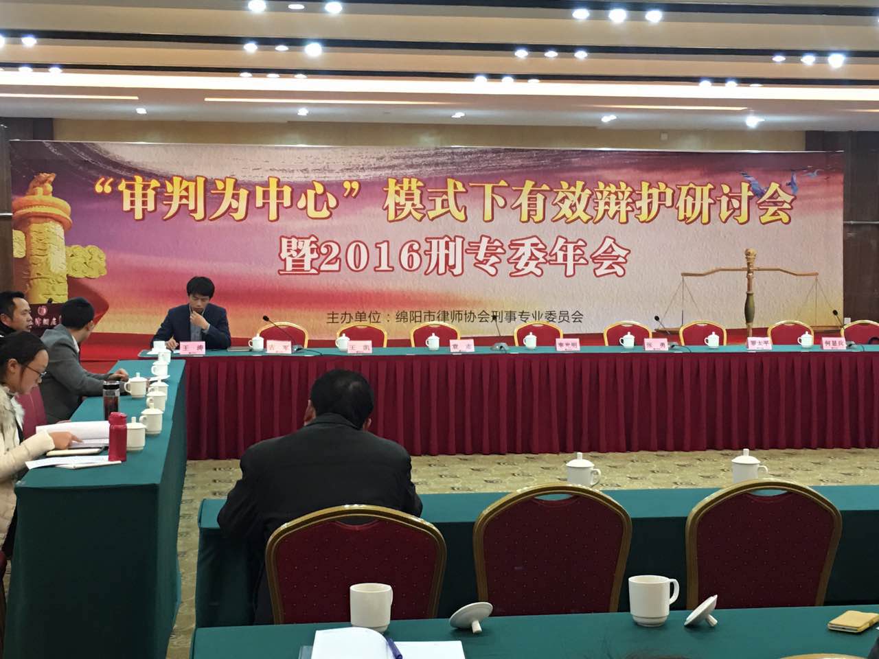 绵阳市律师协会市刑专委定于今日下午2点在东津酒店召开“审判为中心”模式下有效辩护研讨会暨2016刑专委年会,旨在推动实现由传统侦查中心主义到审判中心主义的变革。为了提高律师在“审判为中心”模式下的刑辩业务技能,邀请省律协刑专委主任袁志及中国政法大学刑法学博士,西科大法学院教授何显兵到场交流互动。我所合伙人杨春律师作为刑专委员副主任出席此次会议并作了交流发言,本所马军、周莺莺律师也积极参加学习,我所鼓励和支持律师们不断学习,充实专业知识,为当事人提供更高质量的法律服务。