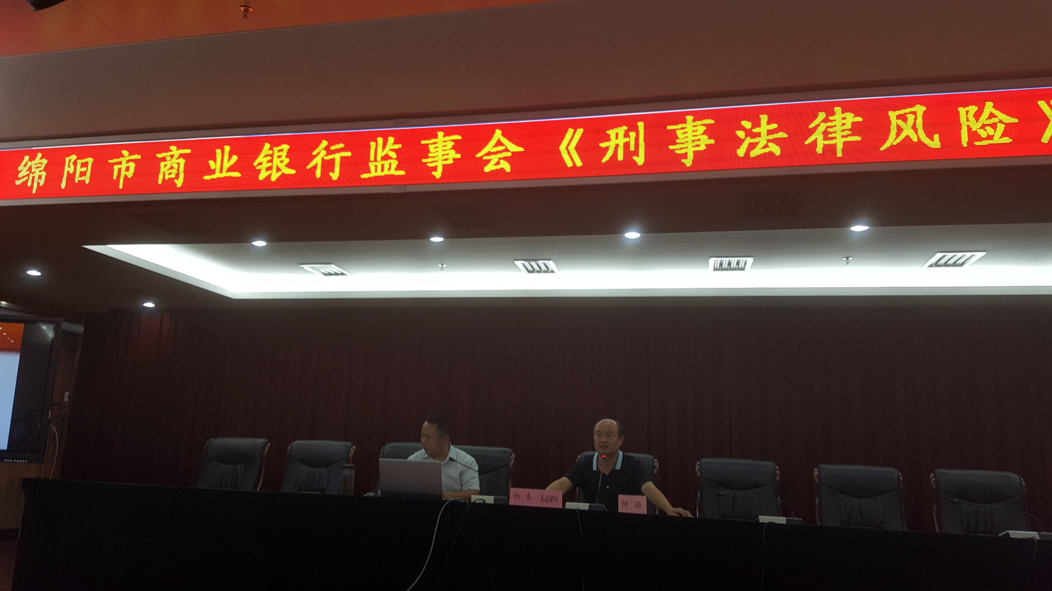 2017年7月24日,我所杨春副主任受绵阳市商业银行邀请,与我所梁普林主任共同参加了在绵阳市商业银行关于绵阳市商业银行监事会《刑事法律风险》主题培训的讲座。