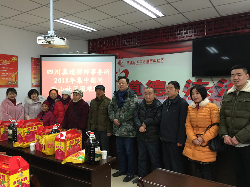 2月1日,四川真道律师事务所和真道所党支部在西山社区开展集中看望、慰问西山社区困难群众的活动,为困难群众送去米、油等生活物资和四川真道律师事务所和真道所党支部全体成员的关怀。四川真道律师事务所党支部书记梁普林带领相关成员以及西山社区刘主任等社区干部参加活动。
