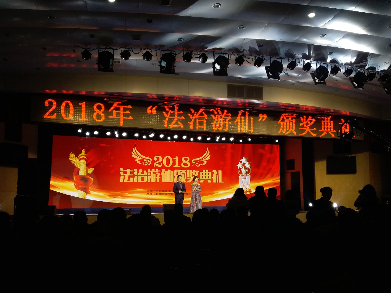 2018年12月28日,首届中国科技城法治创新大赛启动仪式暨2018年“法治游仙”颁奖典礼在游仙区政府隆重举行,大会由绵阳市依法治市办、中共绵阳市委宣传部、绵阳市人大法制委、绵阳市司法局、绵阳市法学会主办,全市各级政府党政机关领导均莅临参会,一曲开场鼓《加油向前冲》拉开大会的序幕。