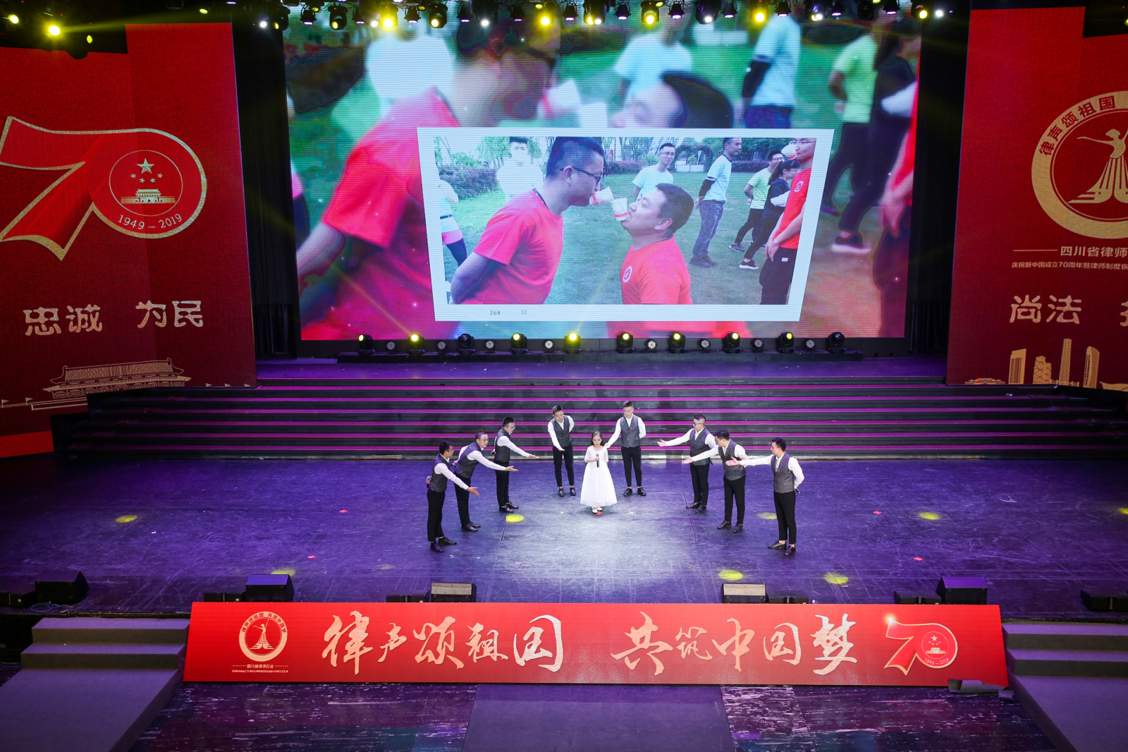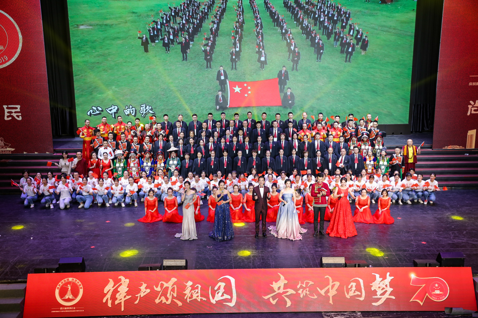 为庆祝新中国成立70周年暨律师制度恢复重建40周年,歌颂祖国、弘扬爱国精神、抒发爱国情怀,提升律师文化底蕴,展示我省律师队伍40年来服务国家社会经济建设的责任担当与奉献精神,由四川省司法厅主办,省律师行业党委、省律协承办的“律声颂祖国 共筑中国梦”——四川省律师行业庆祝新中国成立70周年暨律师制度恢复重建40周年文艺汇演于9月28日下午两点在成都世外桃源大剧院隆重举行。